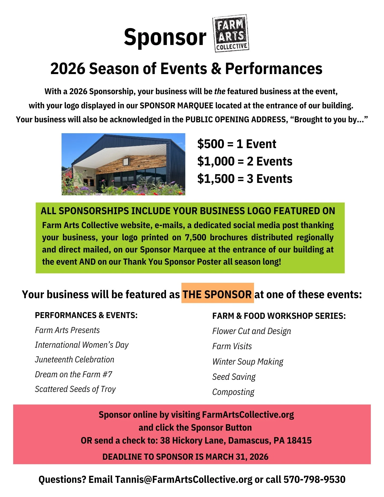 Sponsor an Event, Workshop or Performance in 2026!
